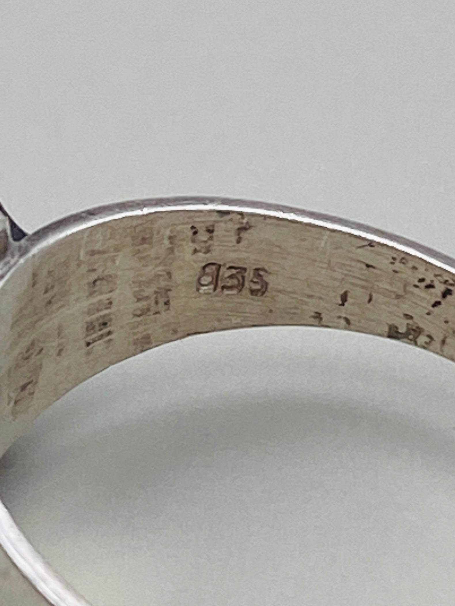 Elegant vintage ring in solid silver hallmarked 835, adorned with a central genuine pearl with a soft and natural luster.