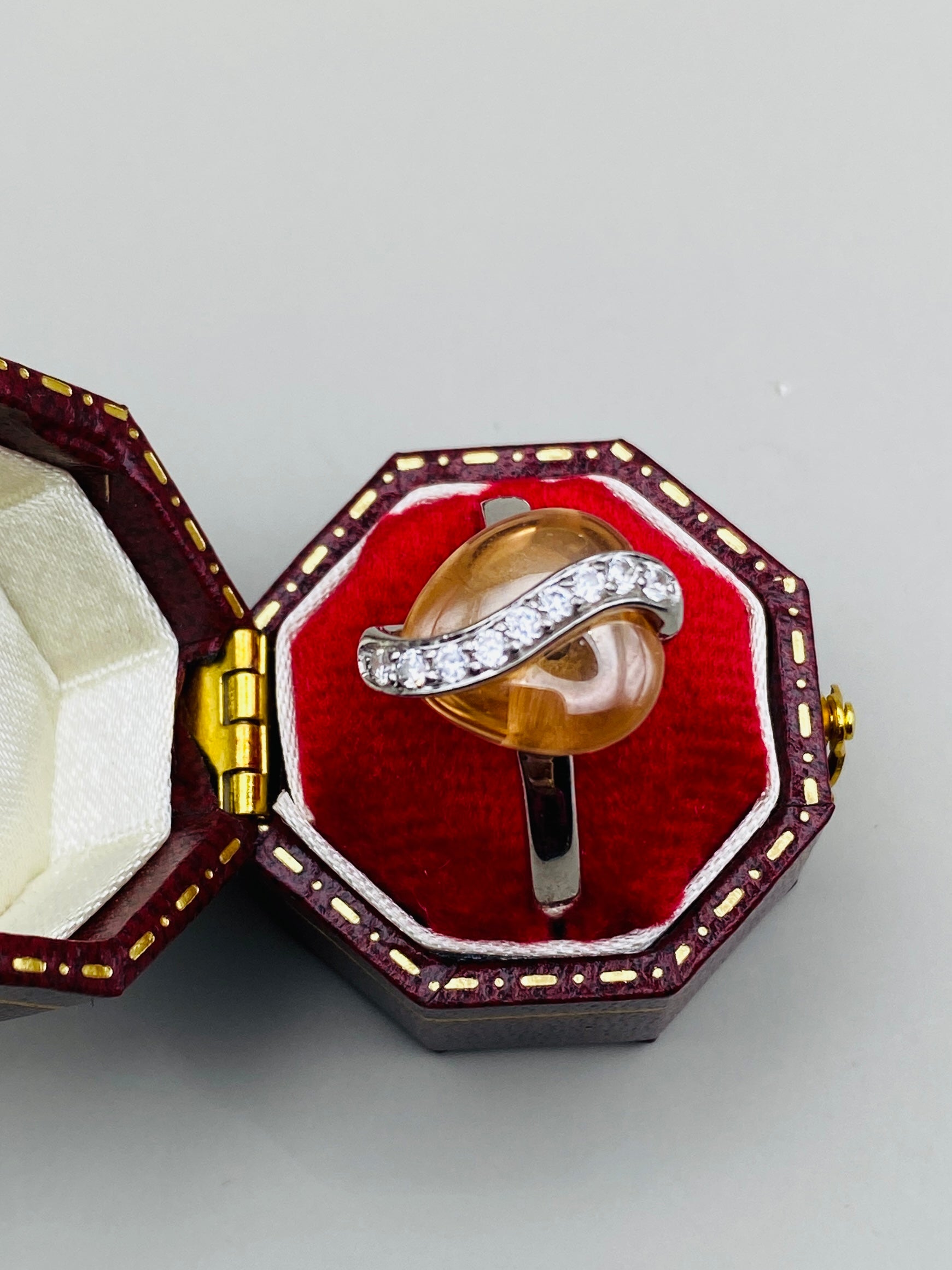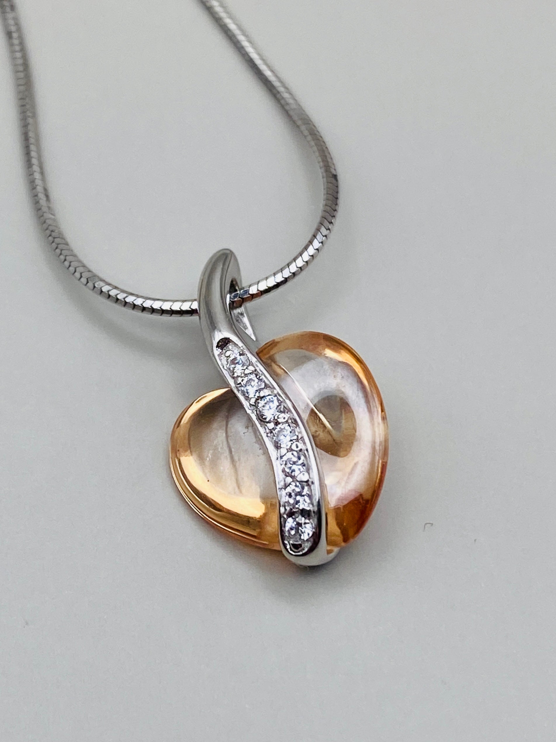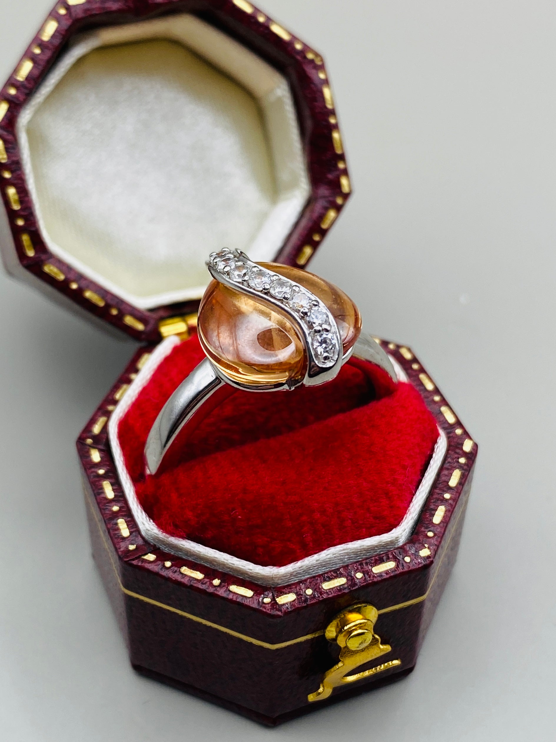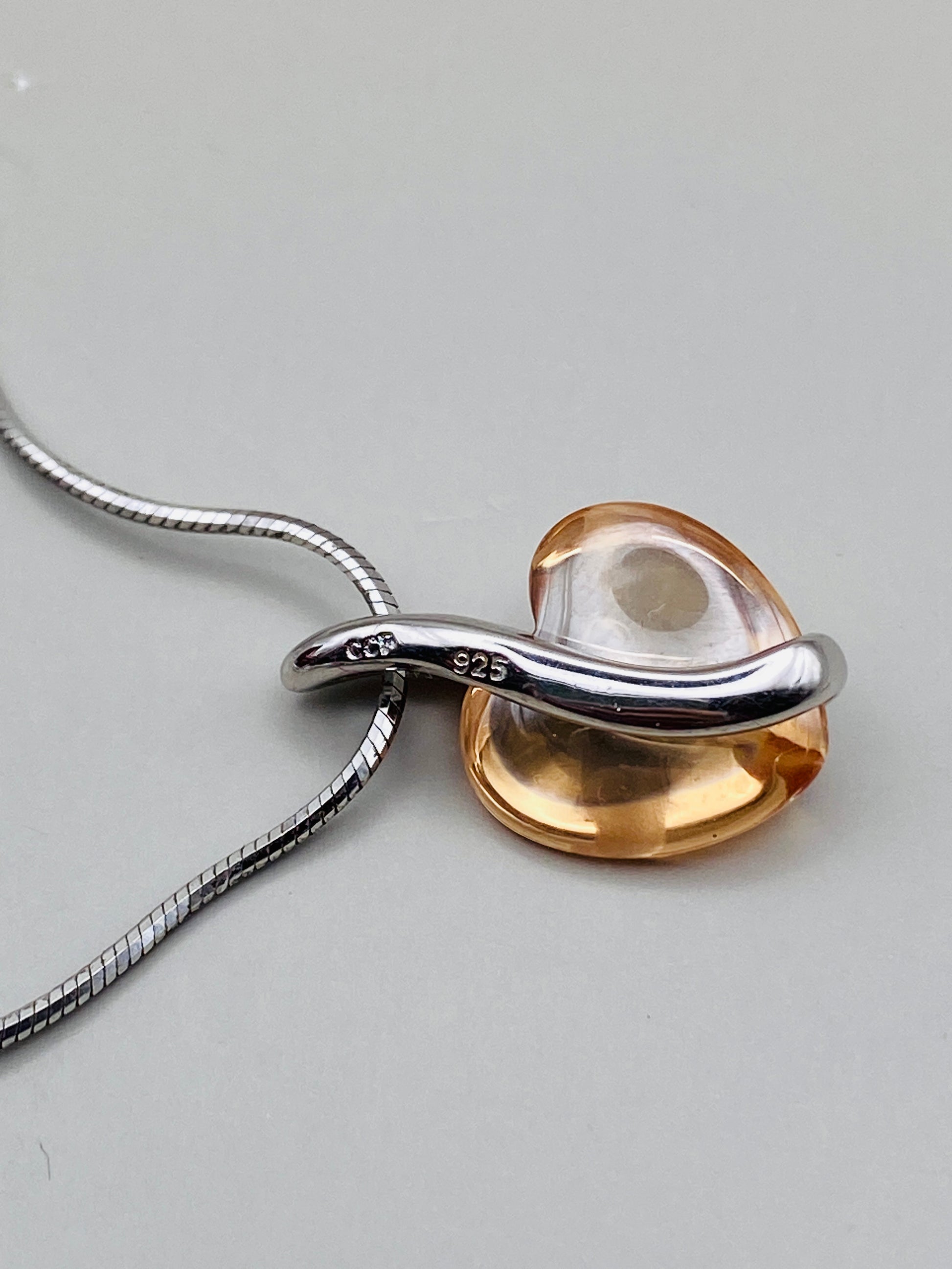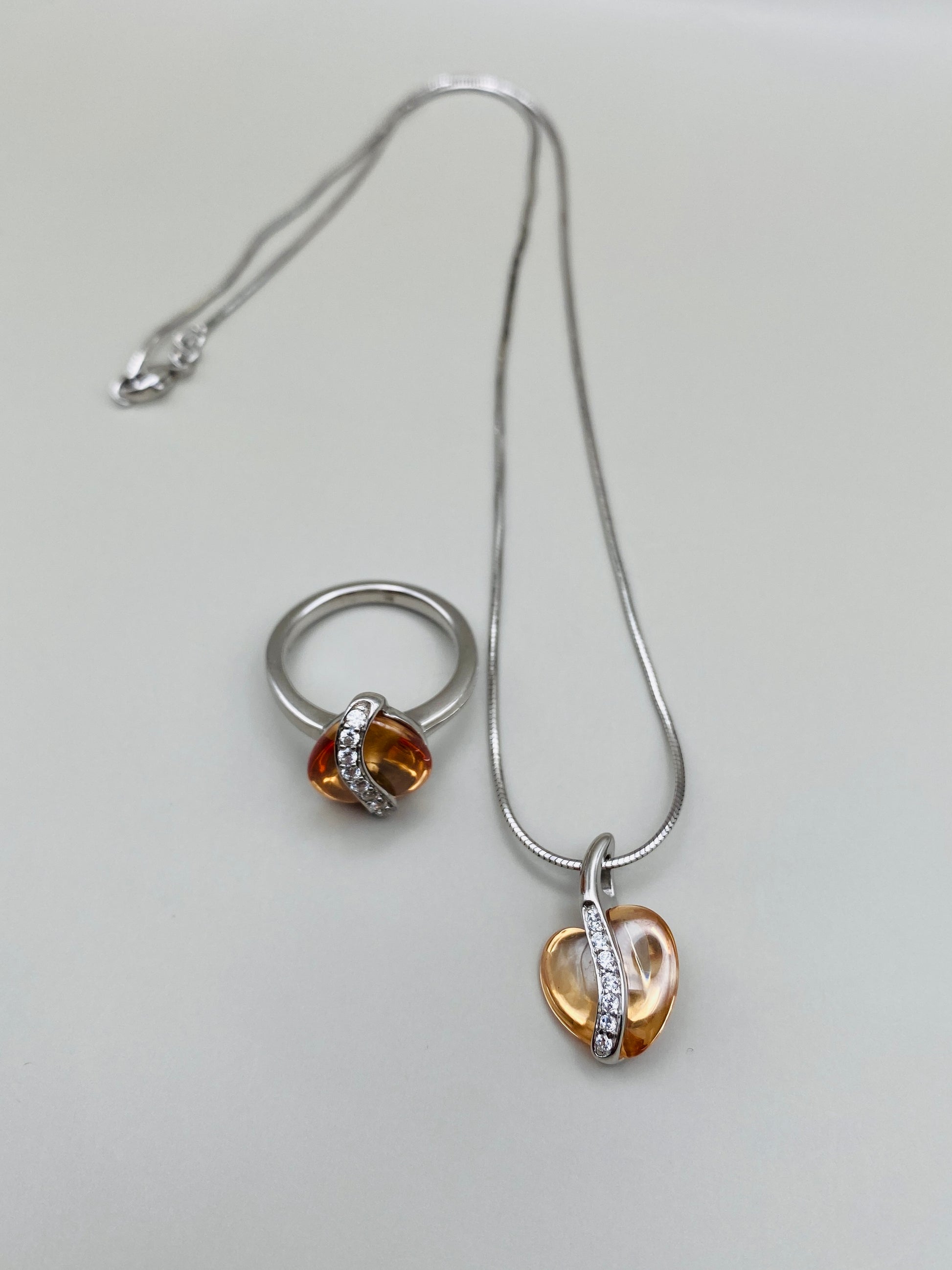Ensemble élégant composé d’une bague et d’un pendentif avec chaîne, réalisé en argent massif 925, accompagné d’une pierre synthétique translucide de teinte ambrée, au rendu très lumineux.