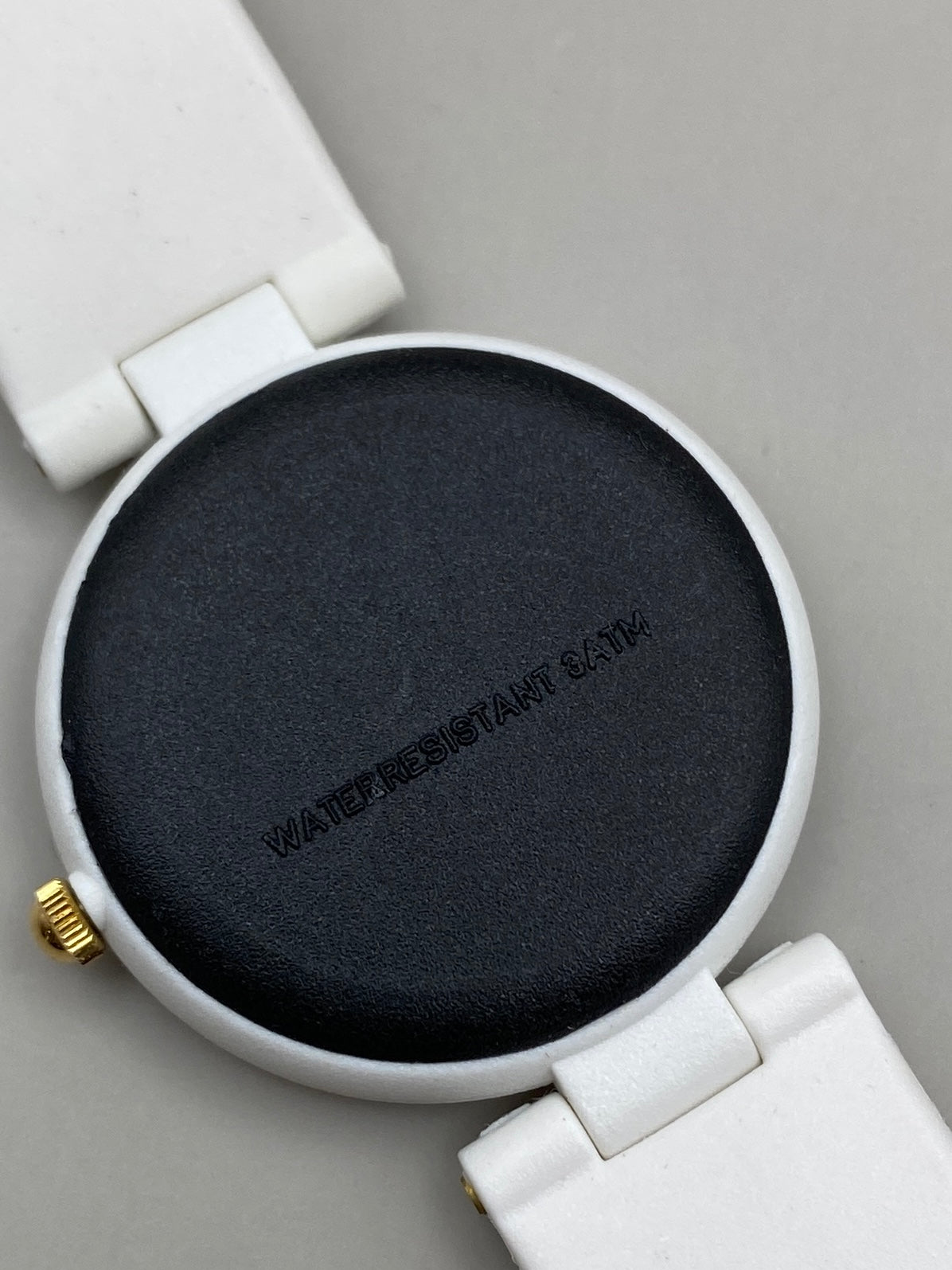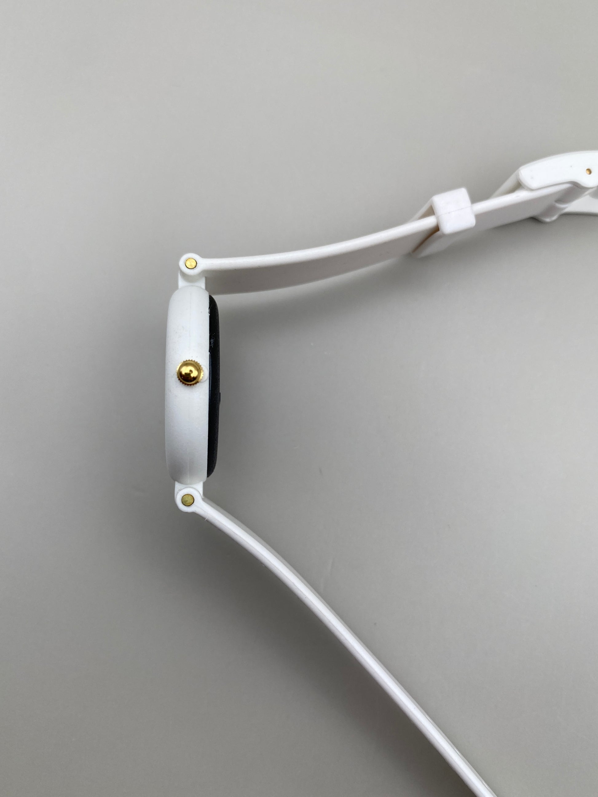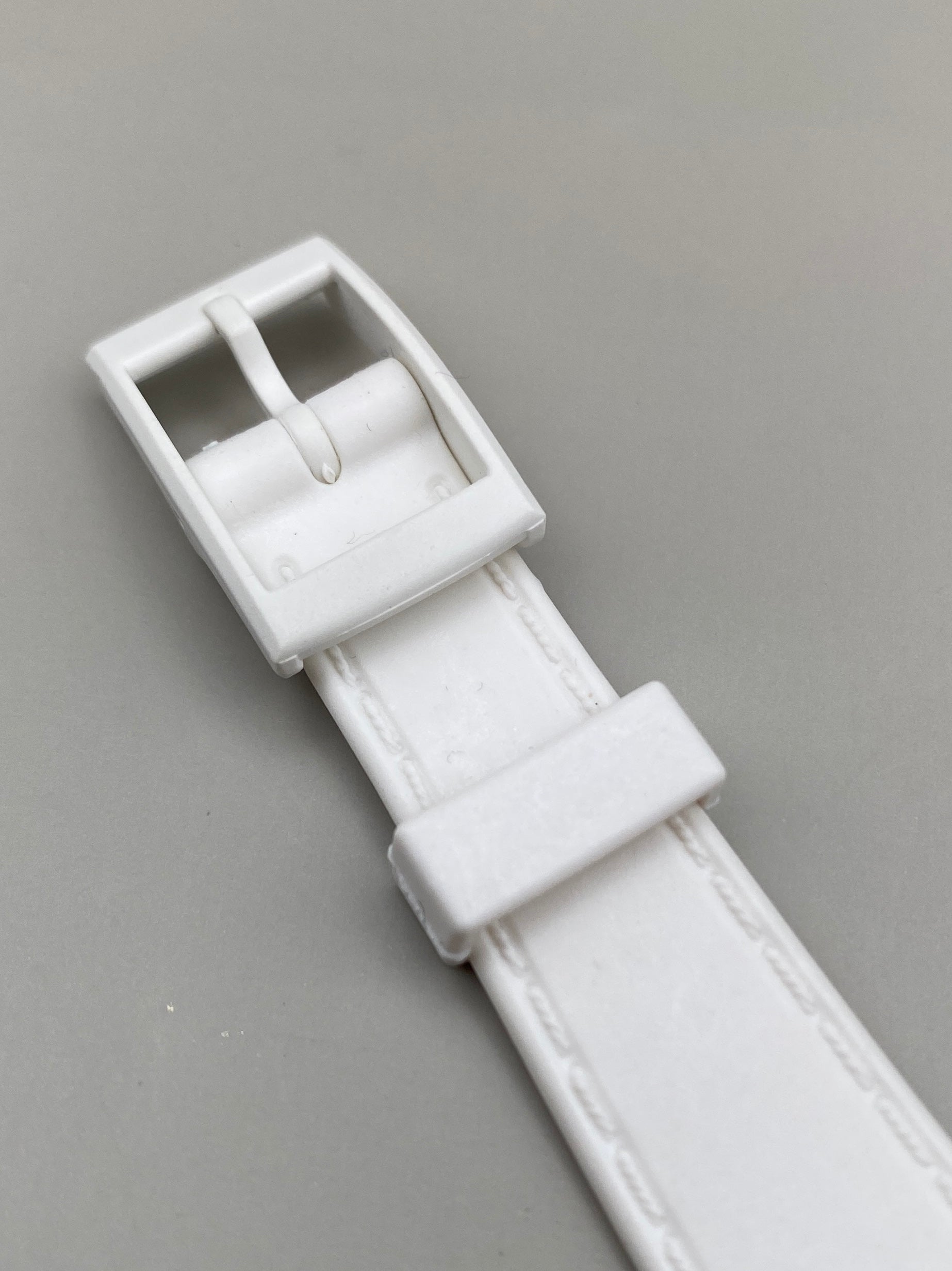 • Bracelet : Plastique blanc, boucle ardillon