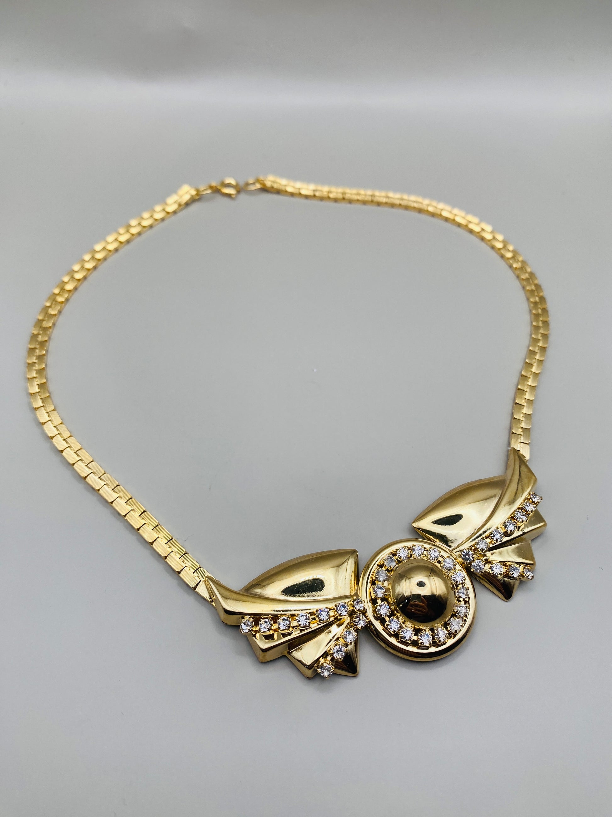 Vintage gold and rhinestone necklace – 80s couture style