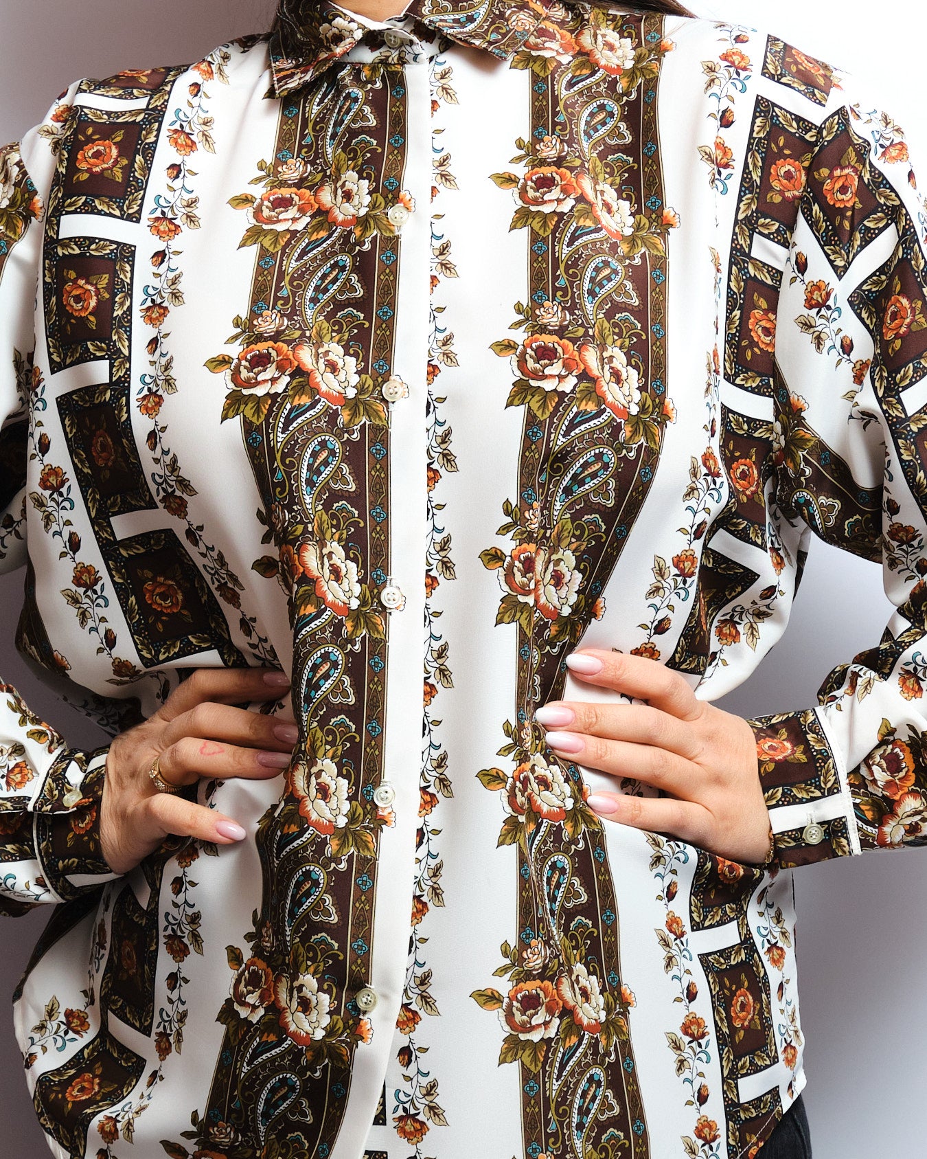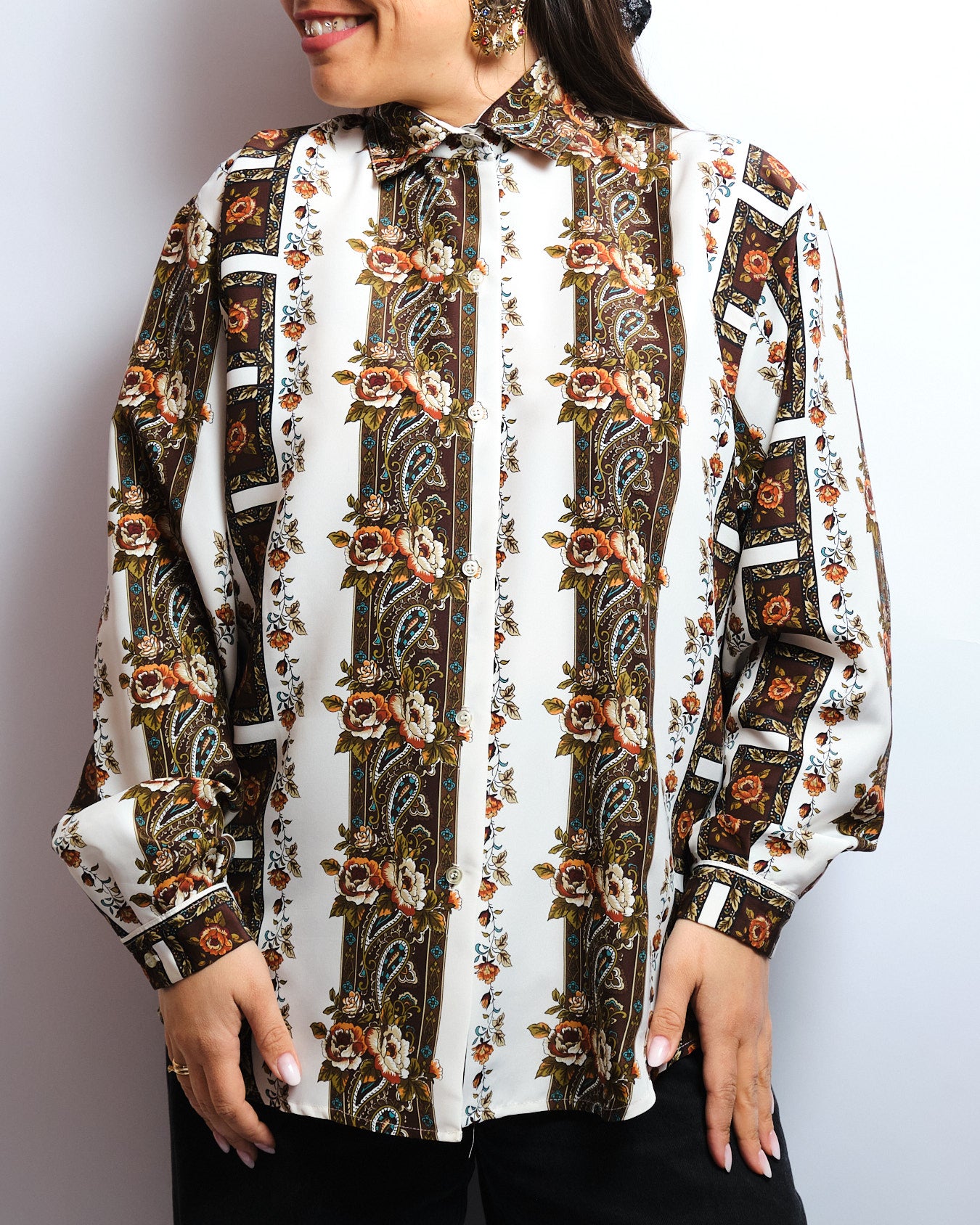 Un chemisier au charme vintage assumé, inspiré des motifs foulard emblématiques.
