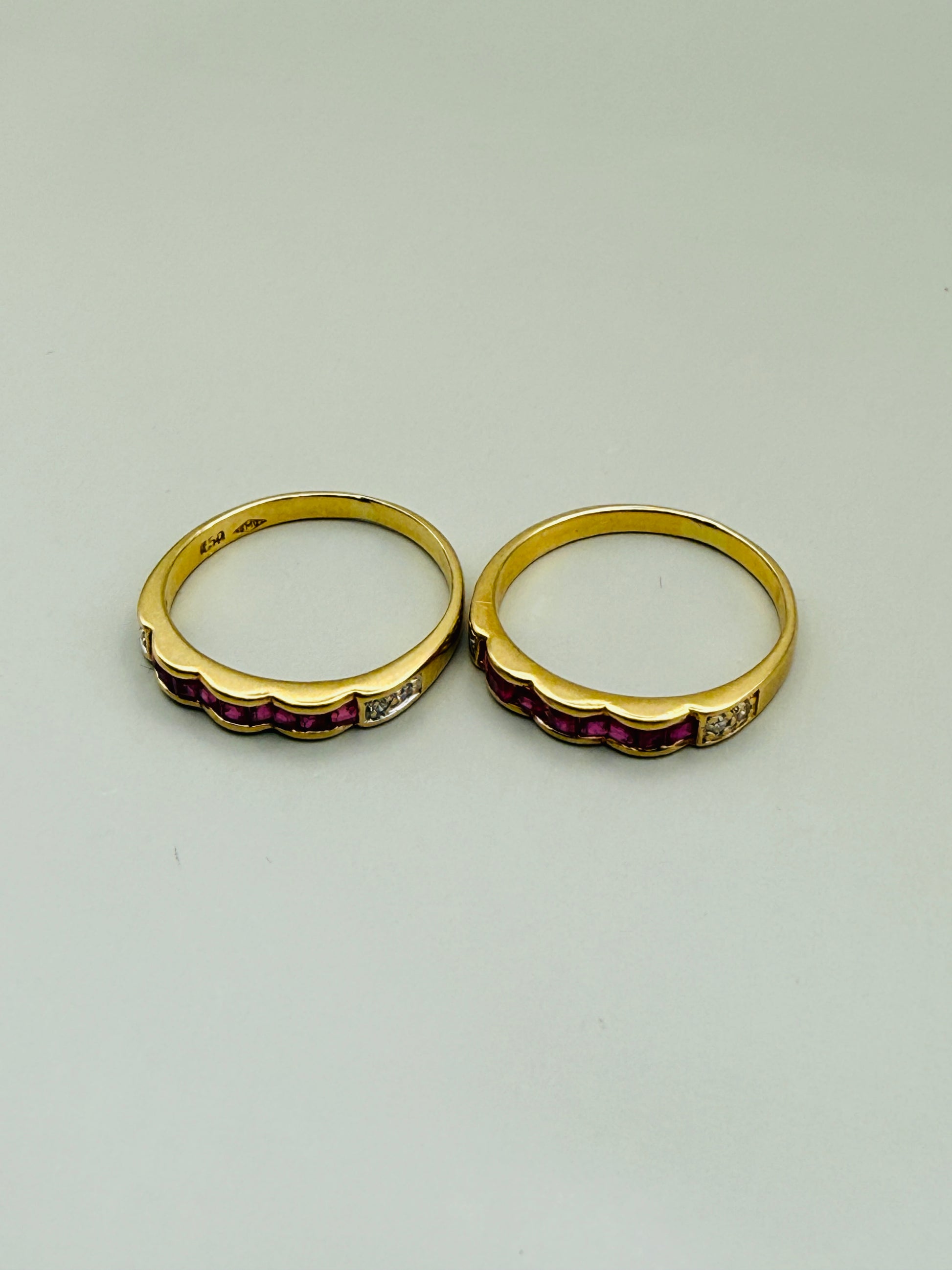 Duo de bagues vintage rubis & diamants en or 18 carats