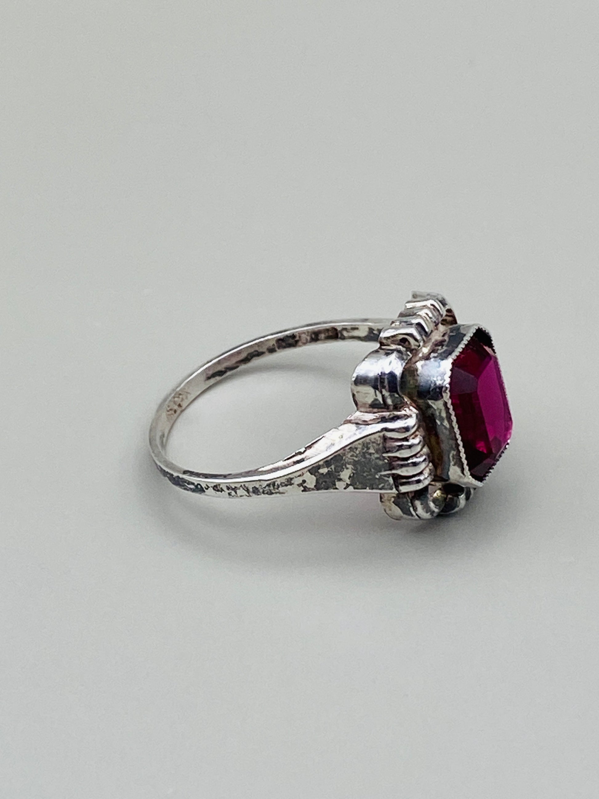 Bague vintage 835 en argent et poinçon de maître, pierre rouge décorative