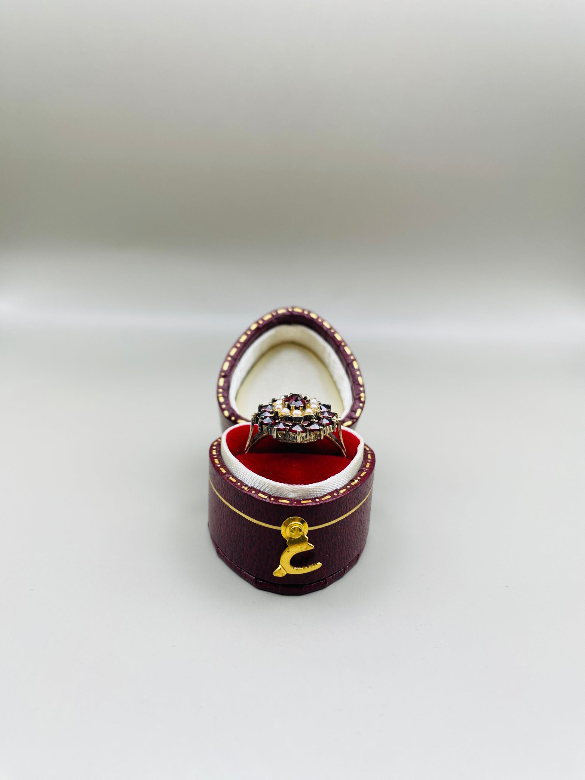 Bague ovale vintage grenats & perles, monture argent 800 Plaquée or