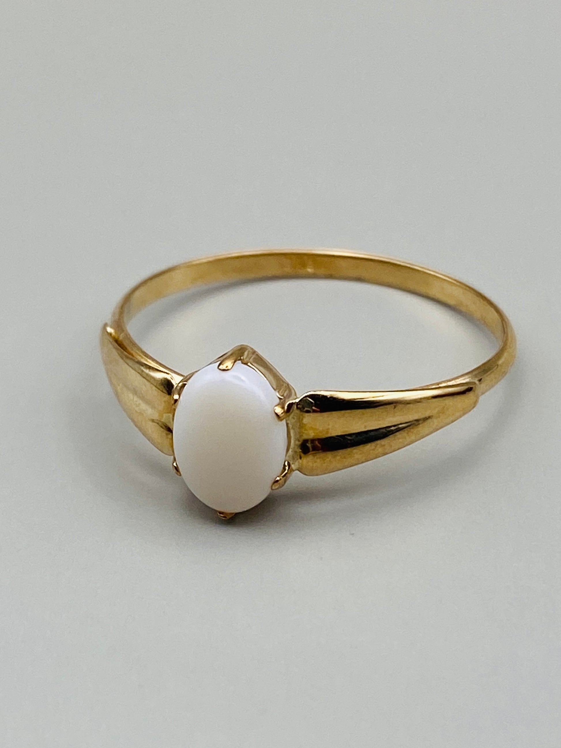 Bague vintage en or 333 (8k) et pierre blanche imitation opale