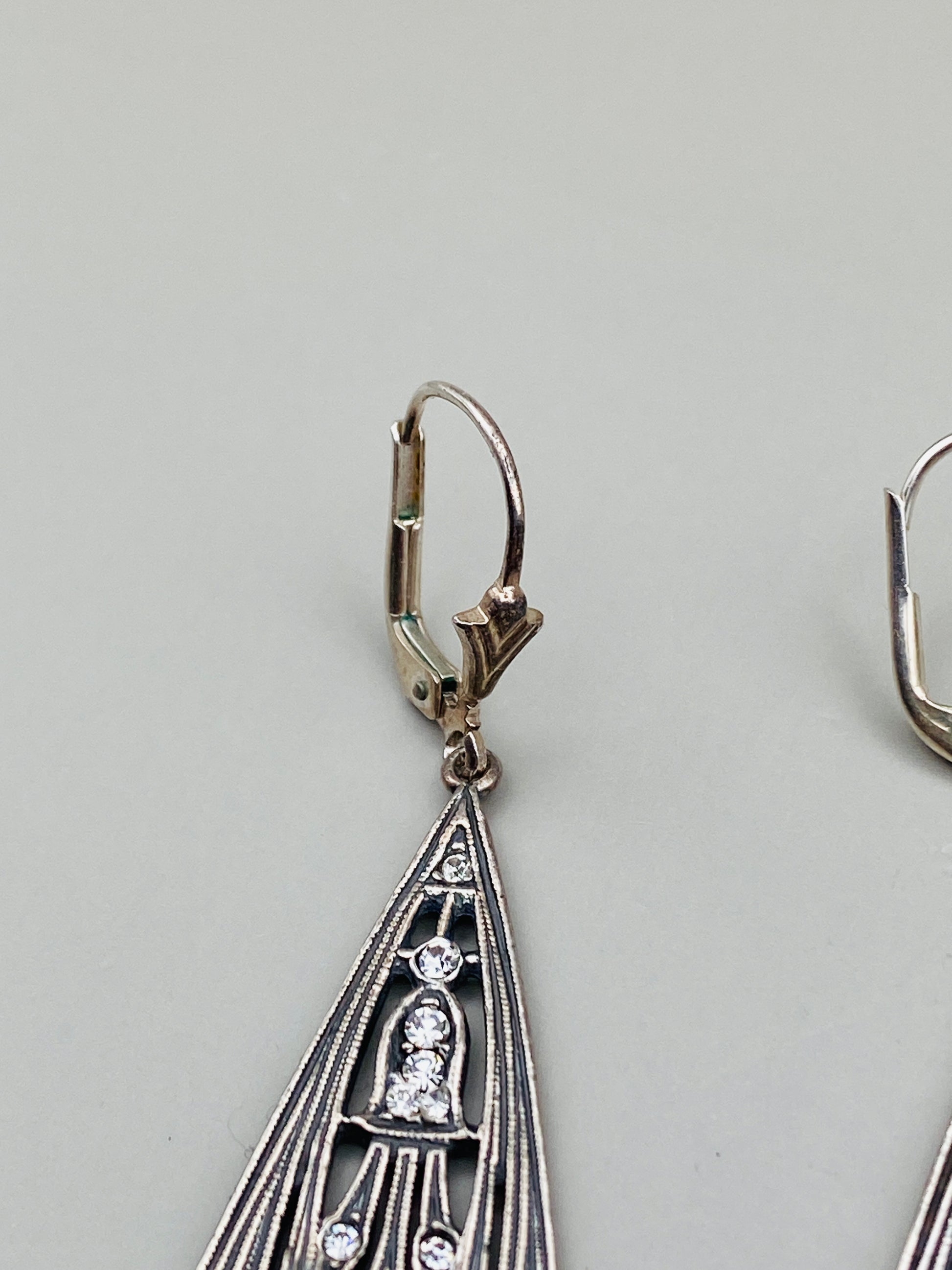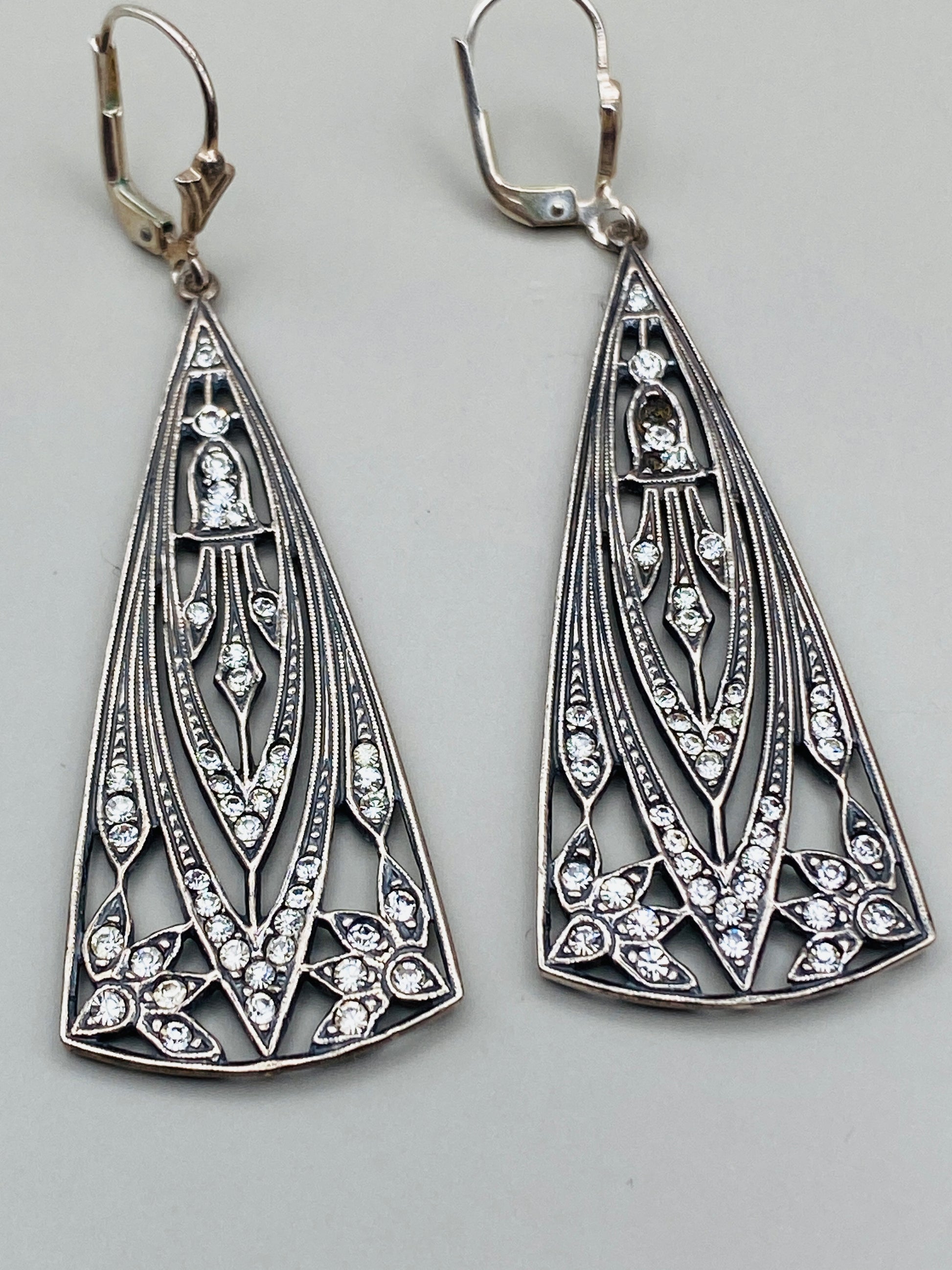 Boucles d’oreilles Art déco en argent 925 – Motifs ajourés & pierres blanches