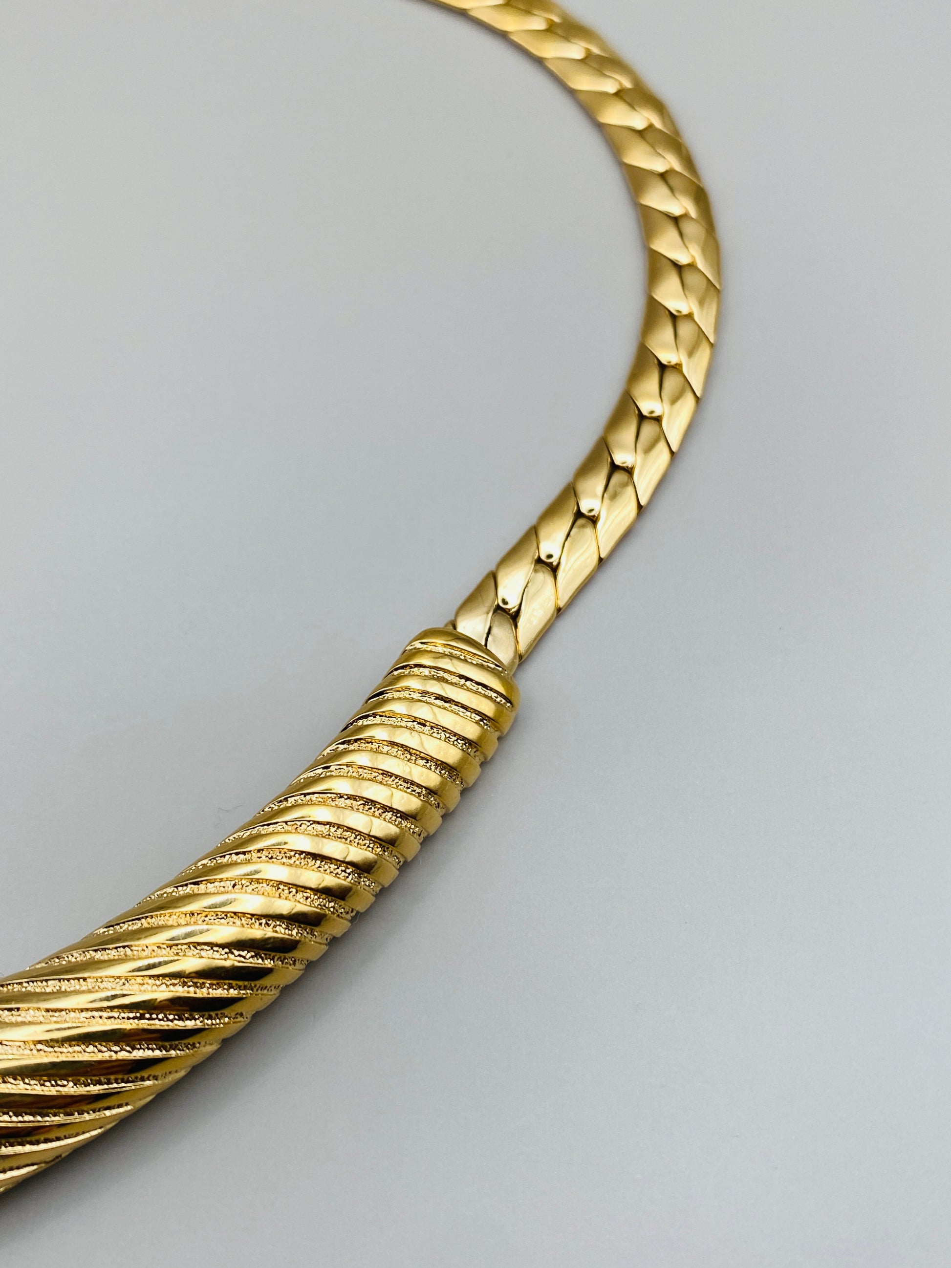 Collier Pierre Lang vintage – plastron doré texturé