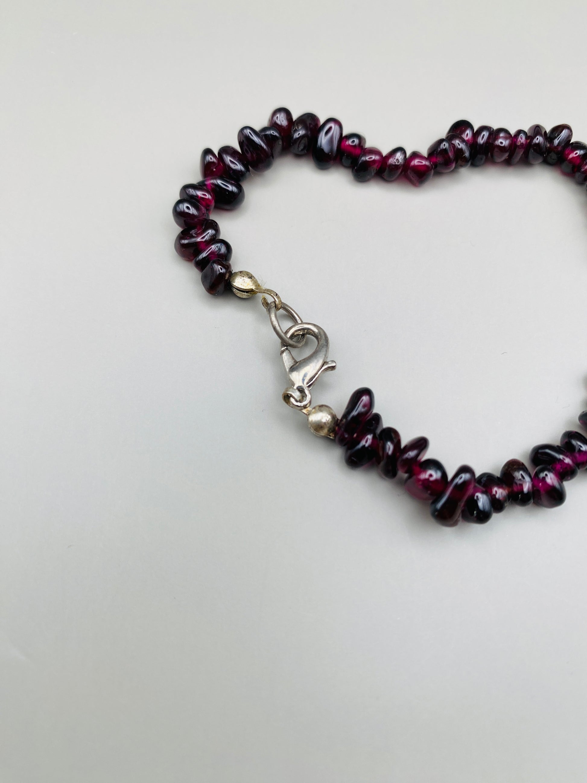 Collier et bracelet assorti en éclats de grenat avec fermoir tubulaire