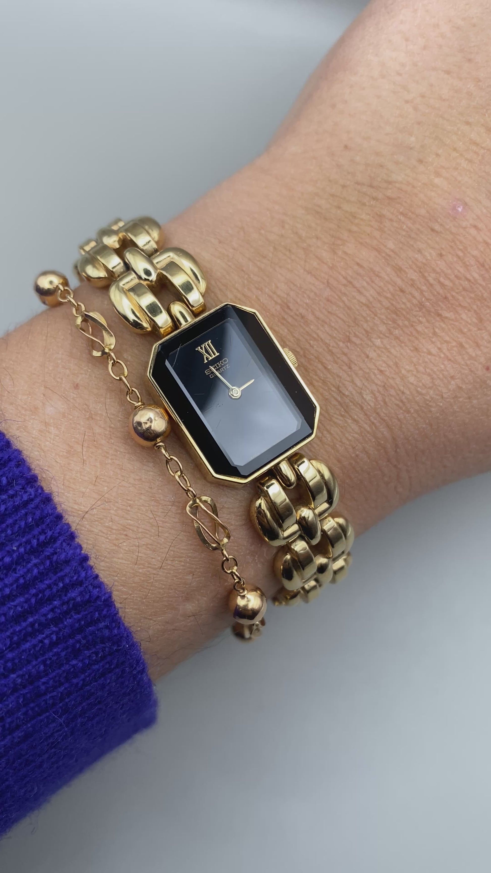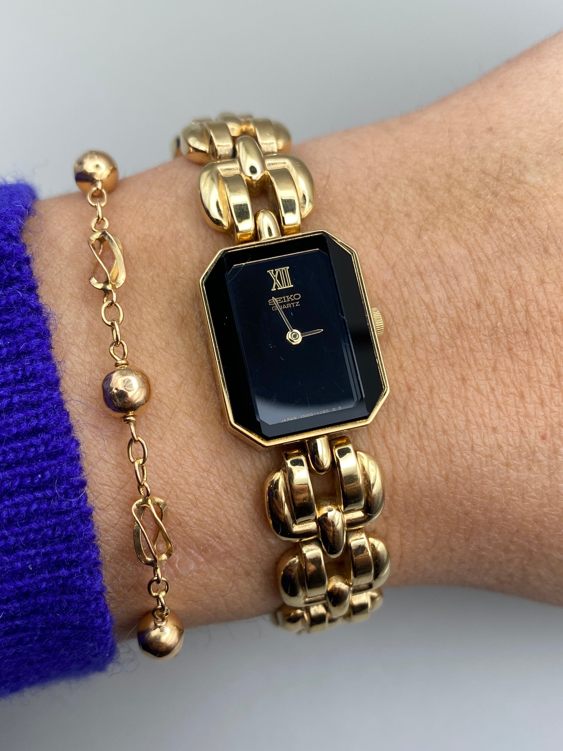 Montre Seiko vintage – montre-bijou dorée à maille articulée