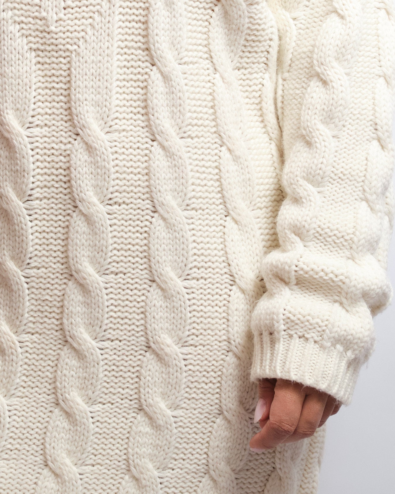 - ✦ Détails : col montant, maille torsadée, motif floral