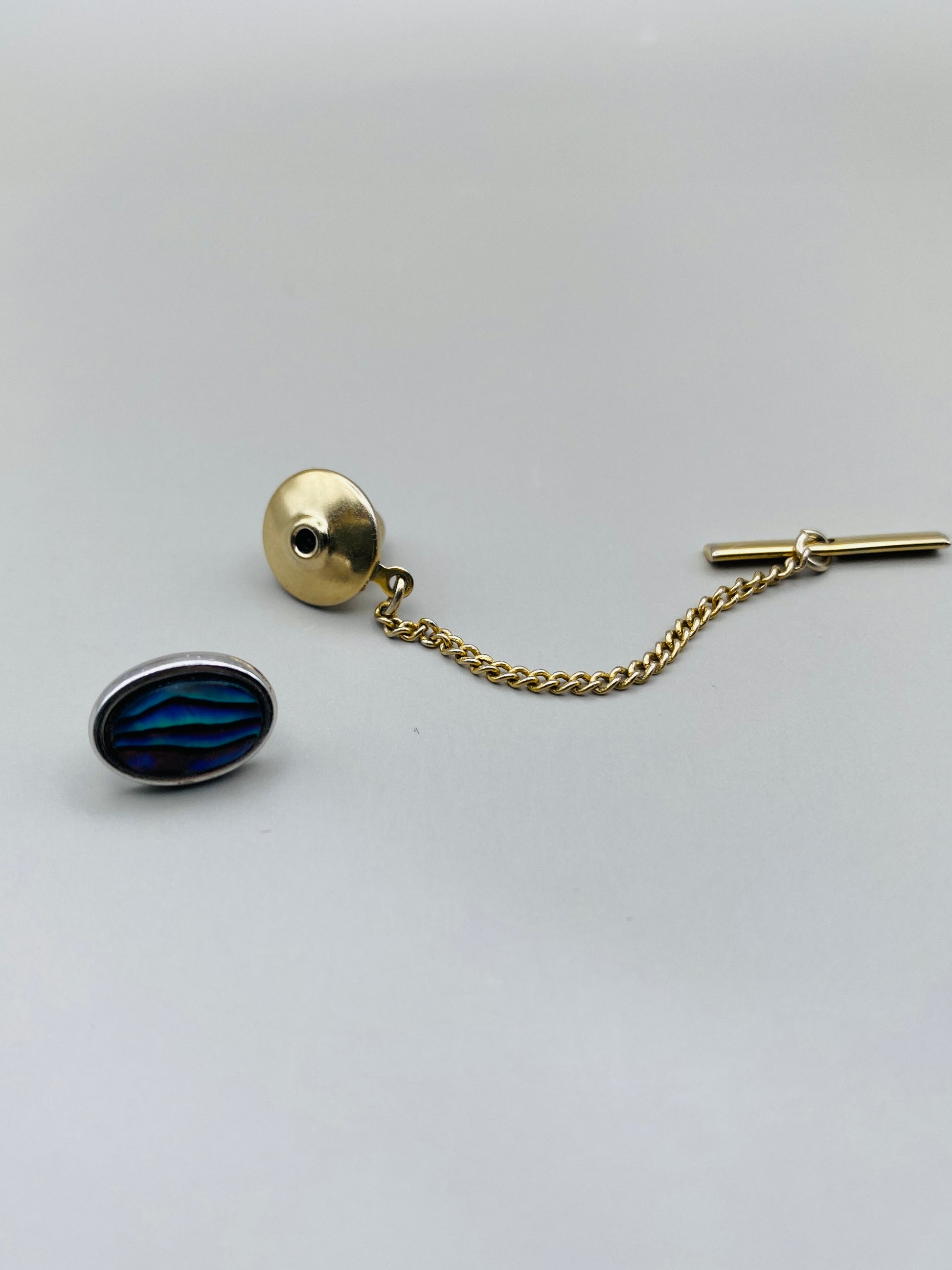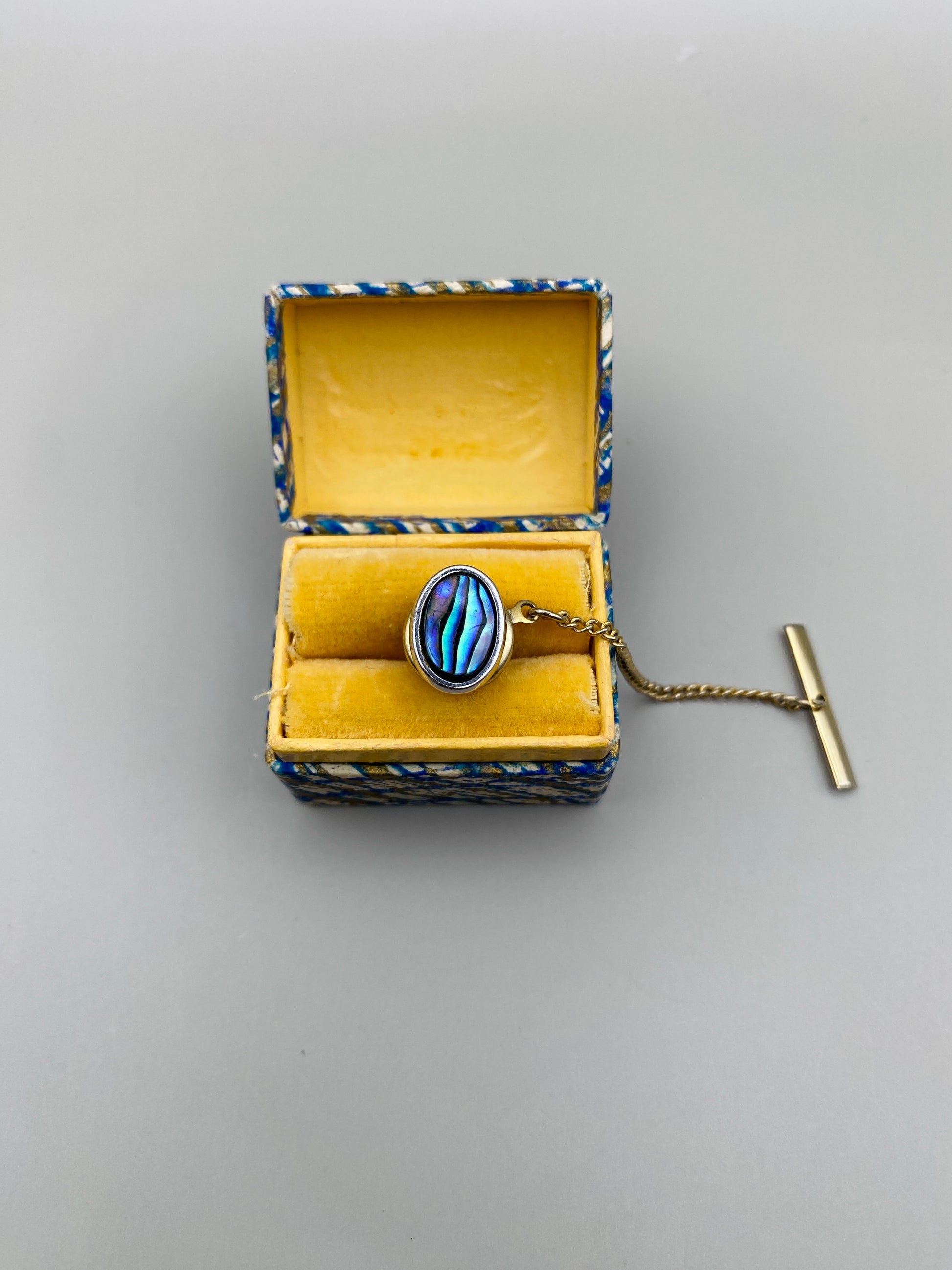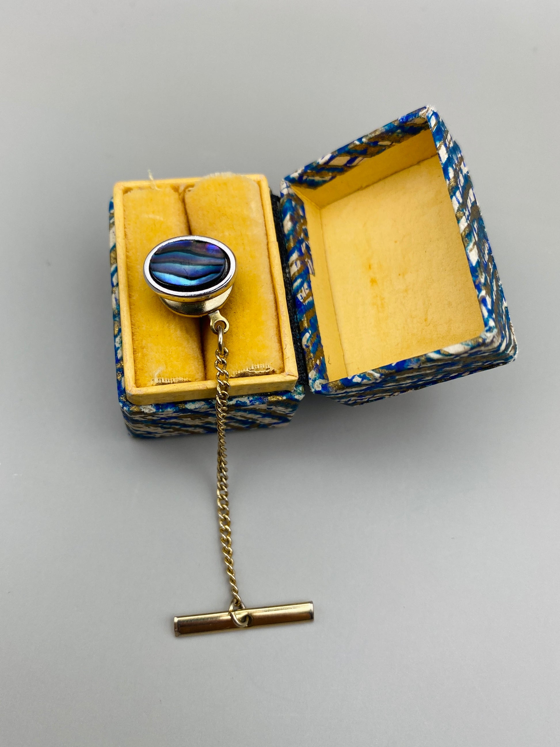 Tie pin ou épingle à cravate années 50 avec décor nacre en parfait état.
